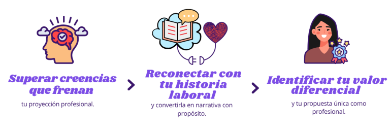 Una experiencia diseñada para que redescubras tu valor profesional, ordenes tu trayectoria y construyas una identidad clara que te abra puertas reales. No es solo “mejorar tu perfil”, es definir quién eres hoy, qué aportas y hacia dónde te diriges. Con acompañamiento, estrategia y acción.