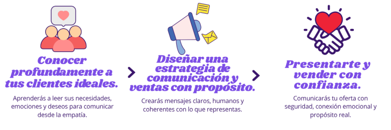 Activarás tu propósito, alinearás tu mensaje con tus valores y aprenderás a crear relaciones reales que fortalezcan la confianza y la lealtad de tus clientes.